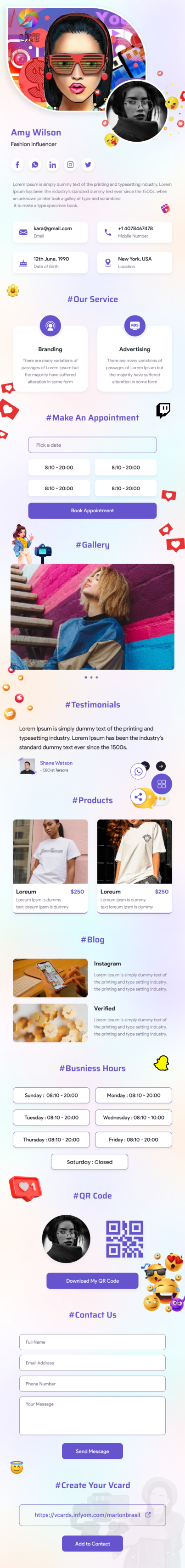 vCard des influenceurs des médias sociaux